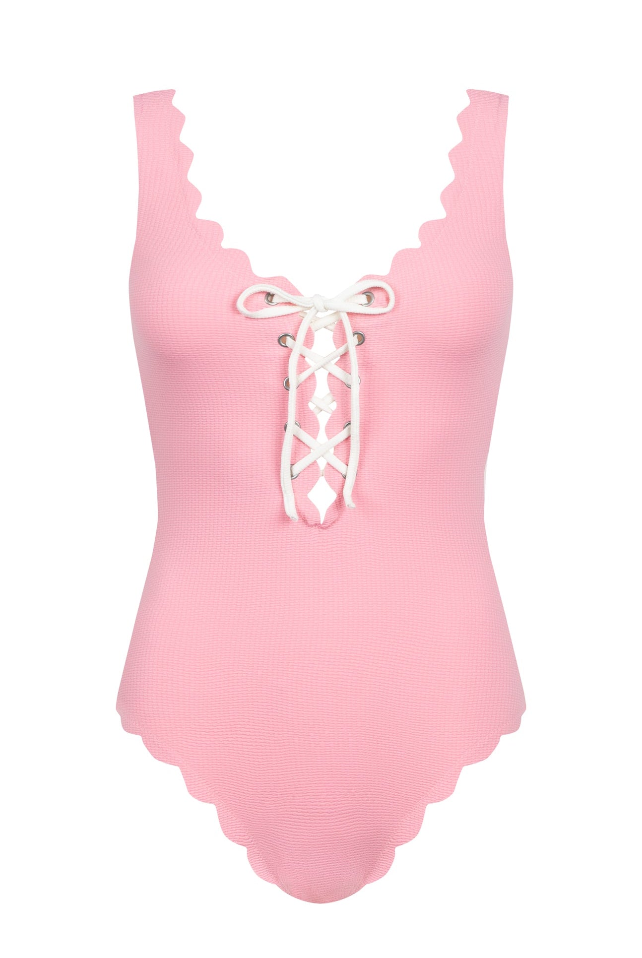 The color palette centers on tonal Tans and soft Browns for an understated, sandy feel that grounds the collection. These earth tones are complemented by unexpected, saturated pops of Rosa (a vibrant pink) and Poppy (a strong, sun-baked orangy red) that mirror the bright colors of tropical flora and sunsets, offering a sophisticated contrast to the iconic print. The collection embodies modern sophistication with effortless style, offering chic swimwear silhouettes, including signature scalloped edges and seamless finishes for which Marysia is known. The Cheetah print is interpreted across high-waisted bikinis, one-piece suits with elegant ties, and reversible pieces.