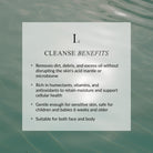 cleanse is a creamy cleanser formulated to soothe delicate skin. Use it on the face and body to clear the skin of dirt, debris, and excess oil without disrupting the acid mantle or microbiome.