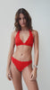 The Spring Top is our halter style bikini top. Offering more support with wider straps, a back neck tie, and a band that offers subtle uplift. Raw edge, hand cut scallops trim this bikini top. Pair with any of our scalloped Classic bottoms.