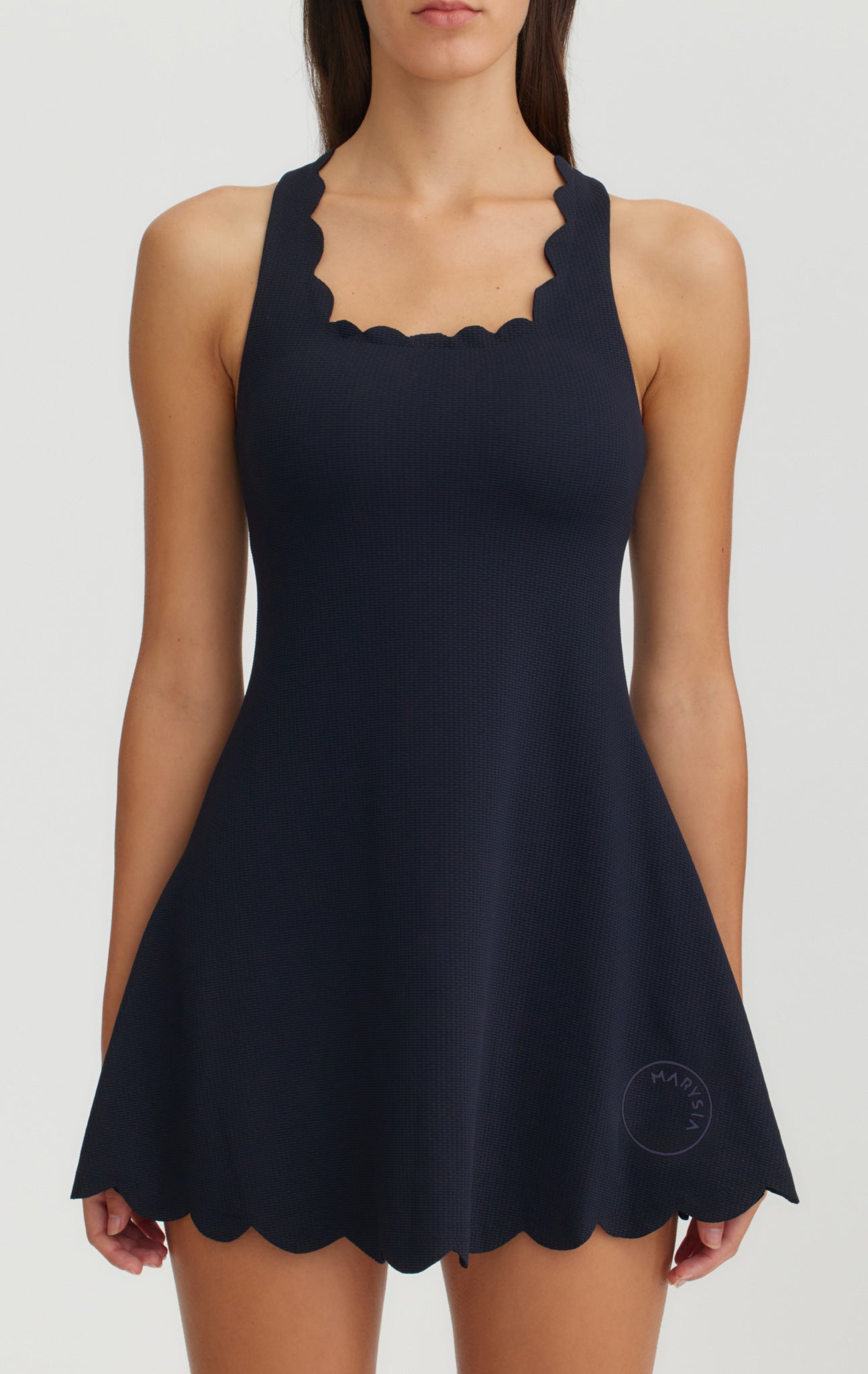 Stay in or sweat it out in our first-ever sport collection. The Serena Dress features a scalloped crossback and built in shelf bra. Our SPORT dresses come with shorts to pair underneath. The Sport Collection is available in extended sizing XXS-XXL.