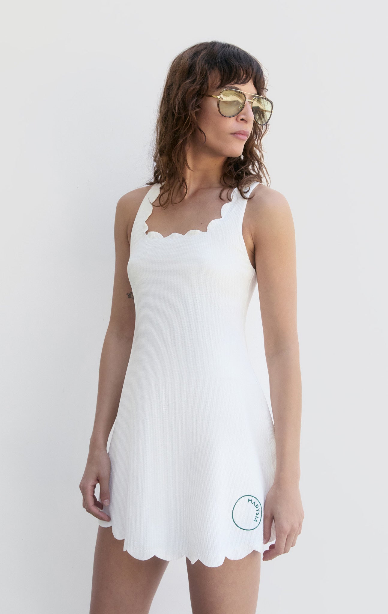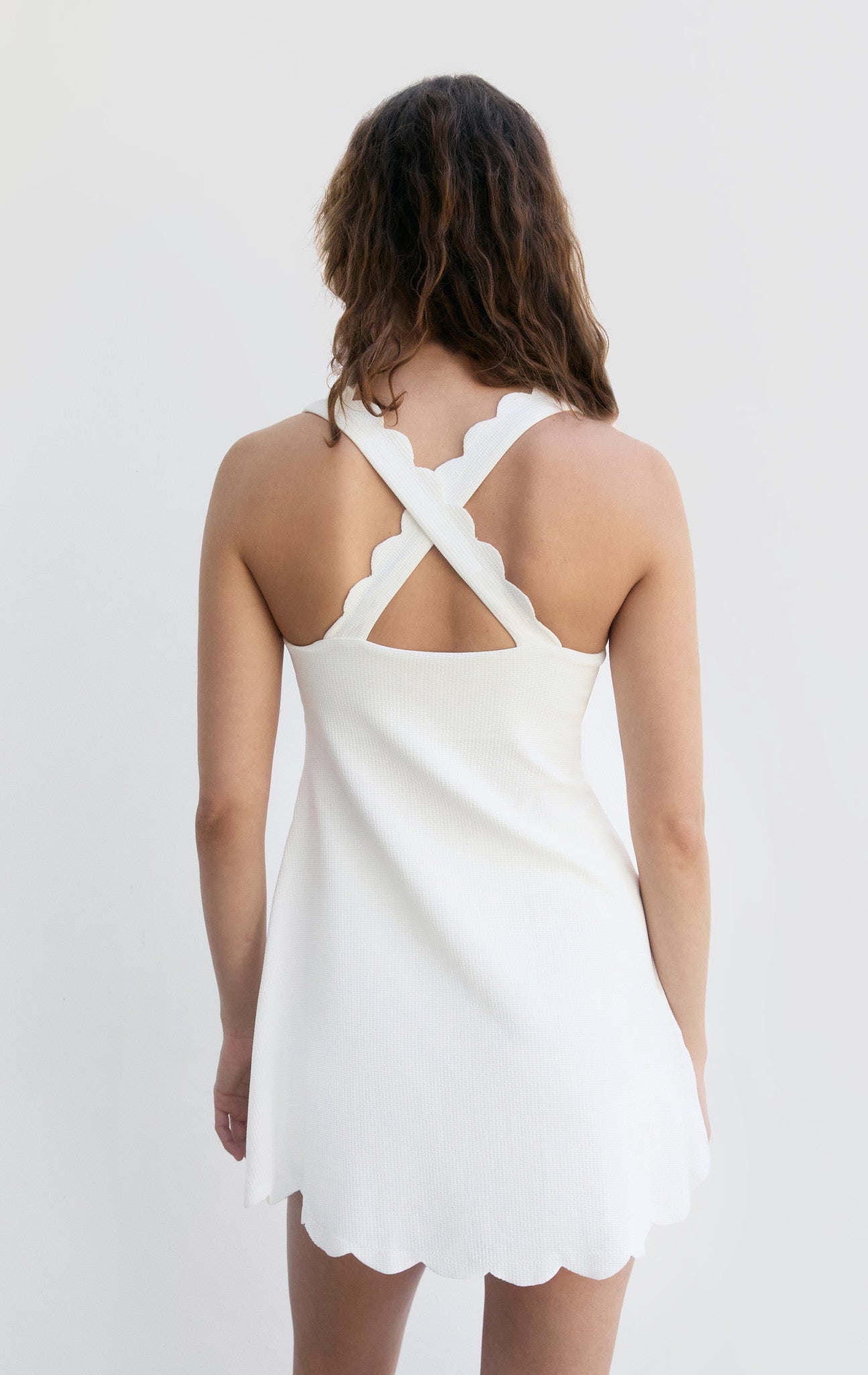 Stay in or sweat it out in our first-ever sport collection. The Serena Dress features a scalloped crossback and built in shelf bra. Our SPORT dresses come with shorts to pair underneath. The Sport Collection is available in extended sizing XXS-XXL.