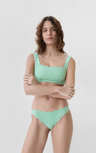 A classic silhouette, the Antibes Bottom is our signature low-rise bottom finished in a raw, hand cut scalloped edge along the waist and legs. Style with any of our Classic scalloped edge tops.