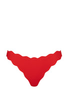 The Mott bottom is one of the Classics that provides minimal coverage. Raw edge, hand cut scallops frame this bikini bottom, finished with two string side ties. Styles well with our Mott Top or Broadway Top. Featured in our seasonal Poppy colorway.