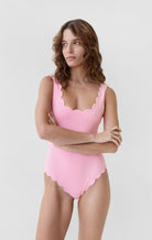 The Palm Springs Maillot is one of the most sought after maillots, with its classic shape, scooped neckline and plunging back. The hand cut, raw edge signature scallops trim the neckline, legs and hips. Also comes in a Long Torso version for those with lengthier upper bodies. Featured in our seasonal Rosa colorway.