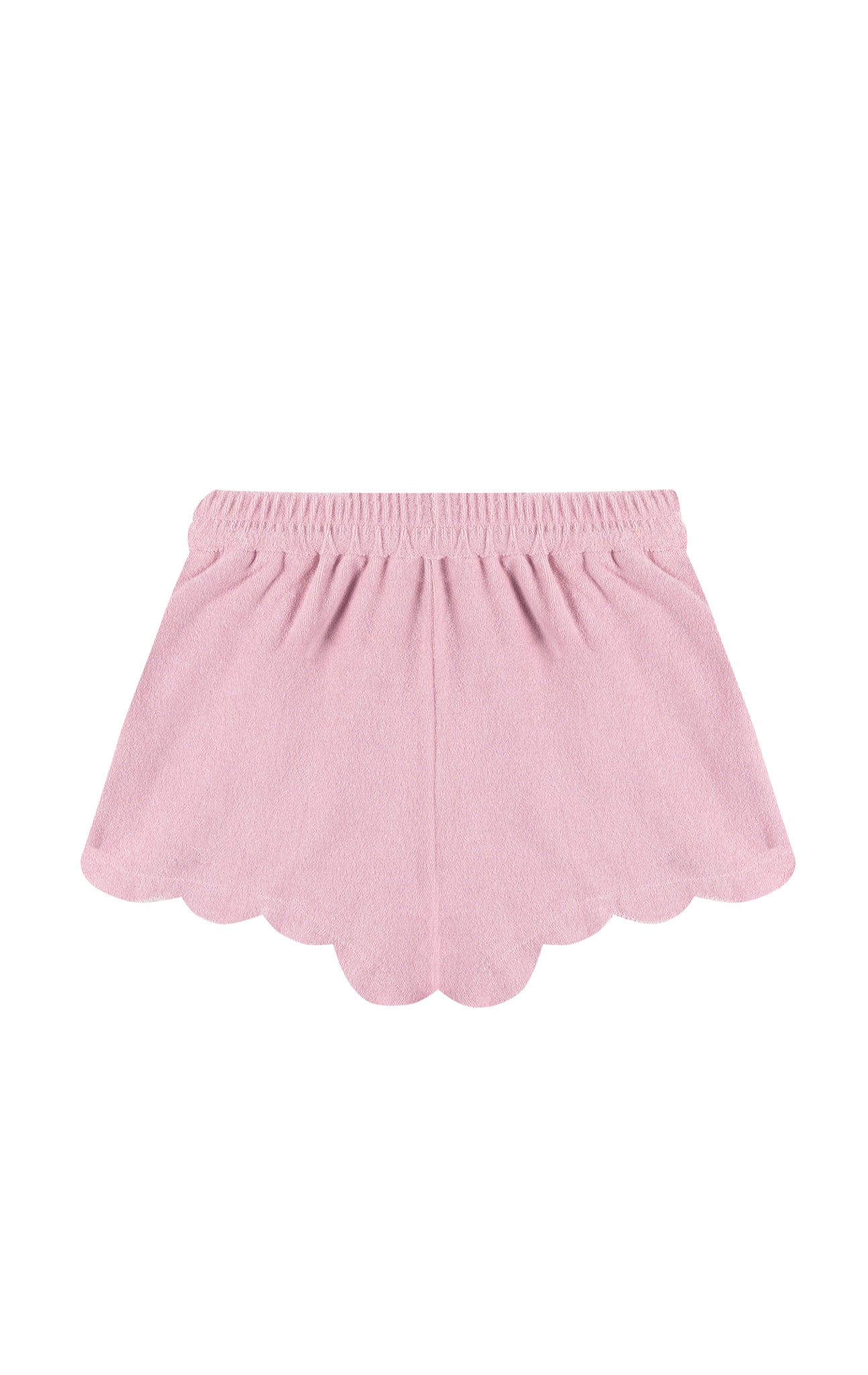 Our best-selling Terry collection comes in sizes for your little one. The Bumby Bellini Shorts feature an elastic waistline, pockets, and our signature scallop detailing along the hemline. These shorts are the perfect pair to any of our Bumby bikini tops or maillots. Now in our seasonal Rosa colorway.