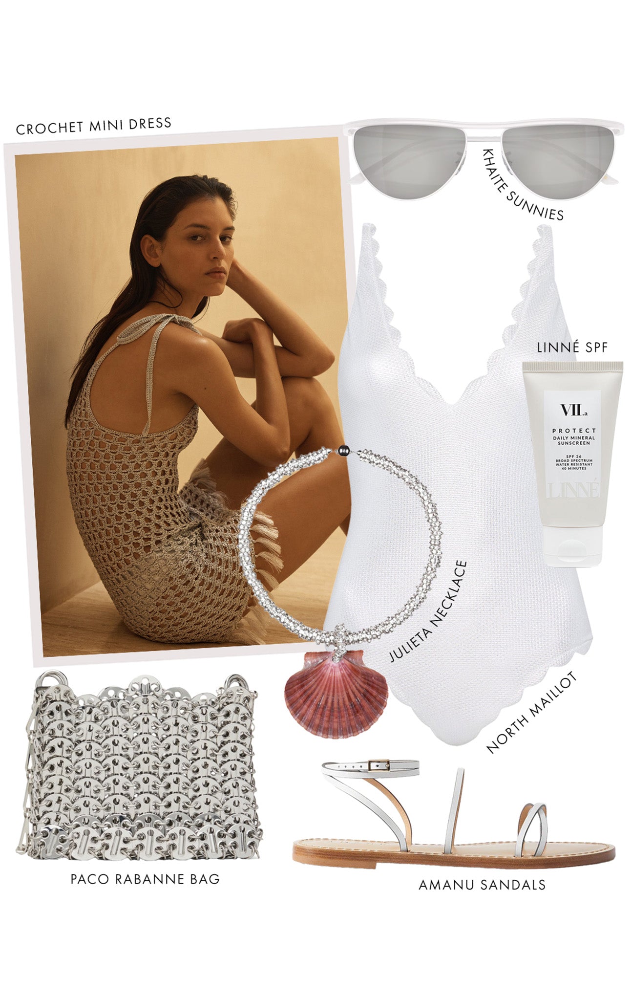 Now offered in silver metallic, this chic maillot is detailed with our signature scallop edging alone the neckline and legs. The deep V neckline is accompanied by slender straps criss crossing the back.