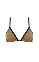 An iconic swimwear silhouette, the triangle, refined by contrast piping details. The Porto string top, ties at the neck and at the back. Pairs perfectly alongside of our contrast bottoms. Featured in our seasonal colorway, Chocolate.