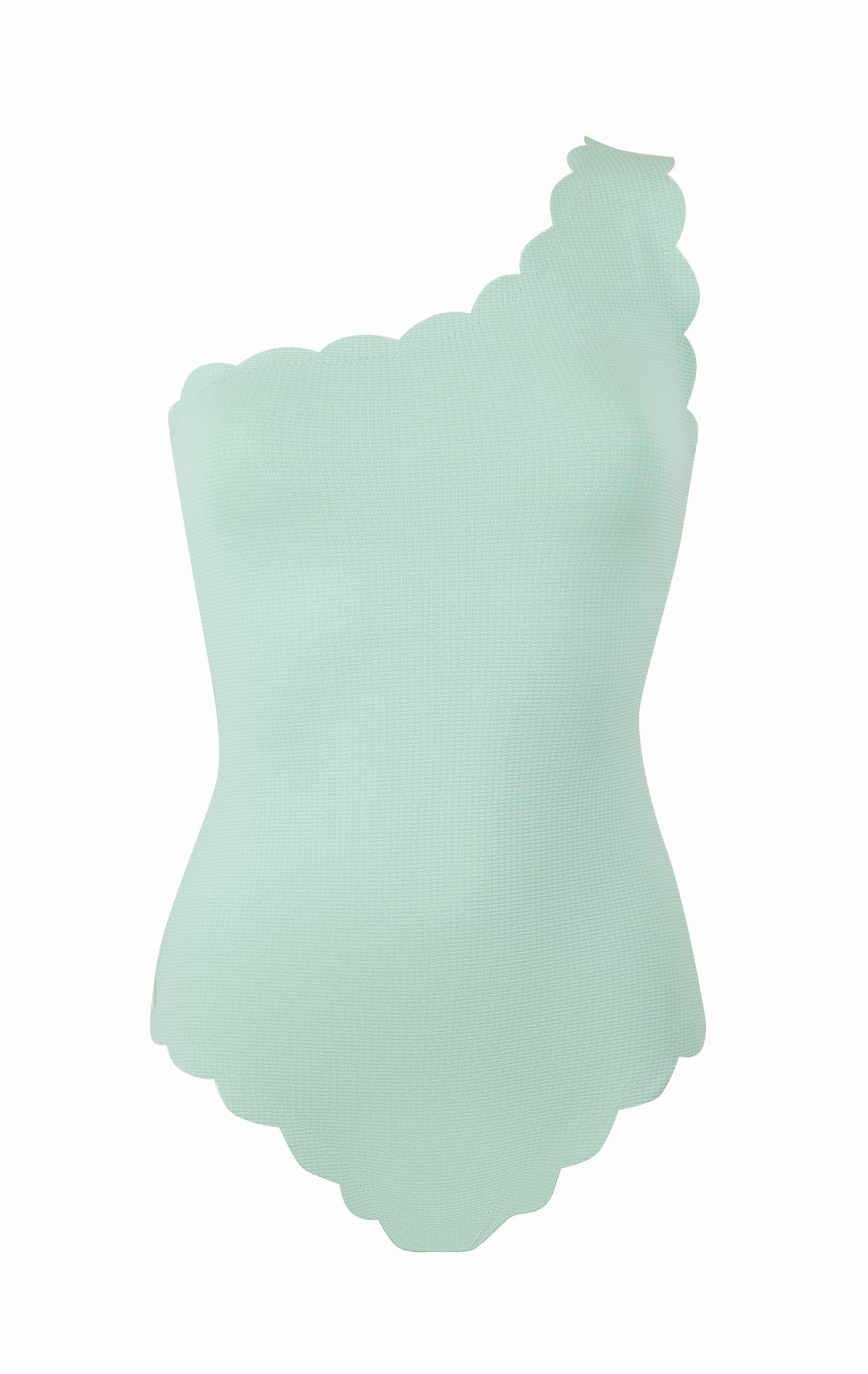 The Santa Barbara Maillot is defined by its one shoulder design. Our hand cut, raw edge signature scallops trim the asymmetrical silhouette, along with the legs and hips. A truly elevated, chic one piece.