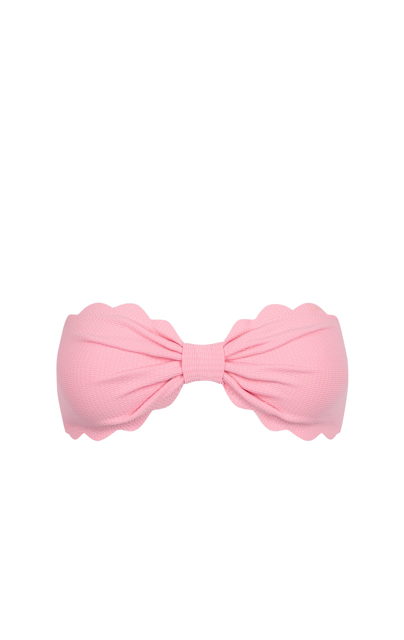 Our renowned Antibes Top is our best-selling strapless icon. Raw, hand cut, scalloped edges trim this classic silhouette, with boning that provides the flattering shape the Antibes is best known for. Pair with any of our Classic bottoms. Featured in our seasonal Rosa colorway.