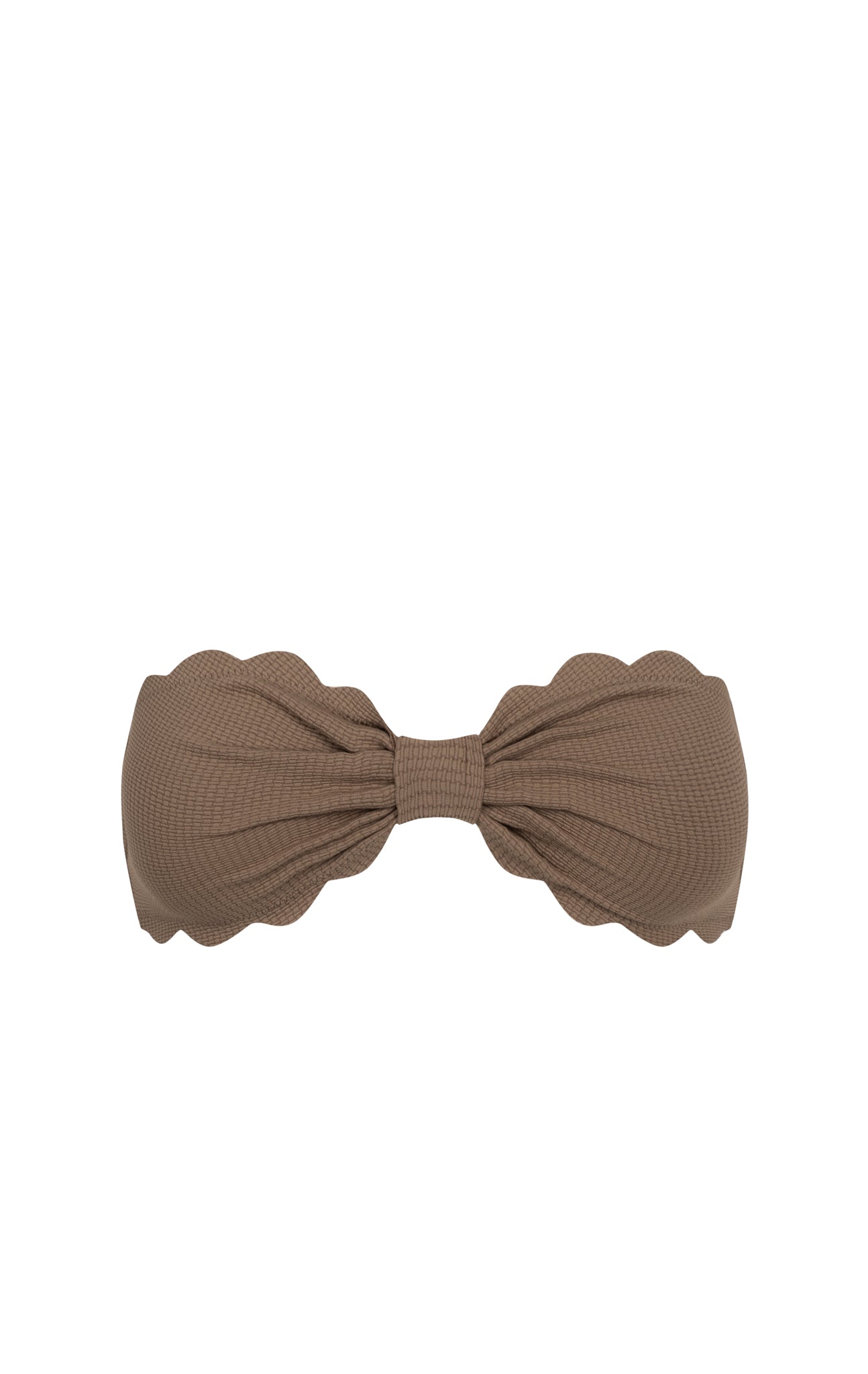 Our renowned Antibes Top is our best-selling strapless icon. Raw, hand cut, scalloped edges trim this classic silhouette, with boning that provides the flattering shape the Antibes is best known for. Pair with any of our Classic bottoms. Featured in our seasonal Taupe colorway.