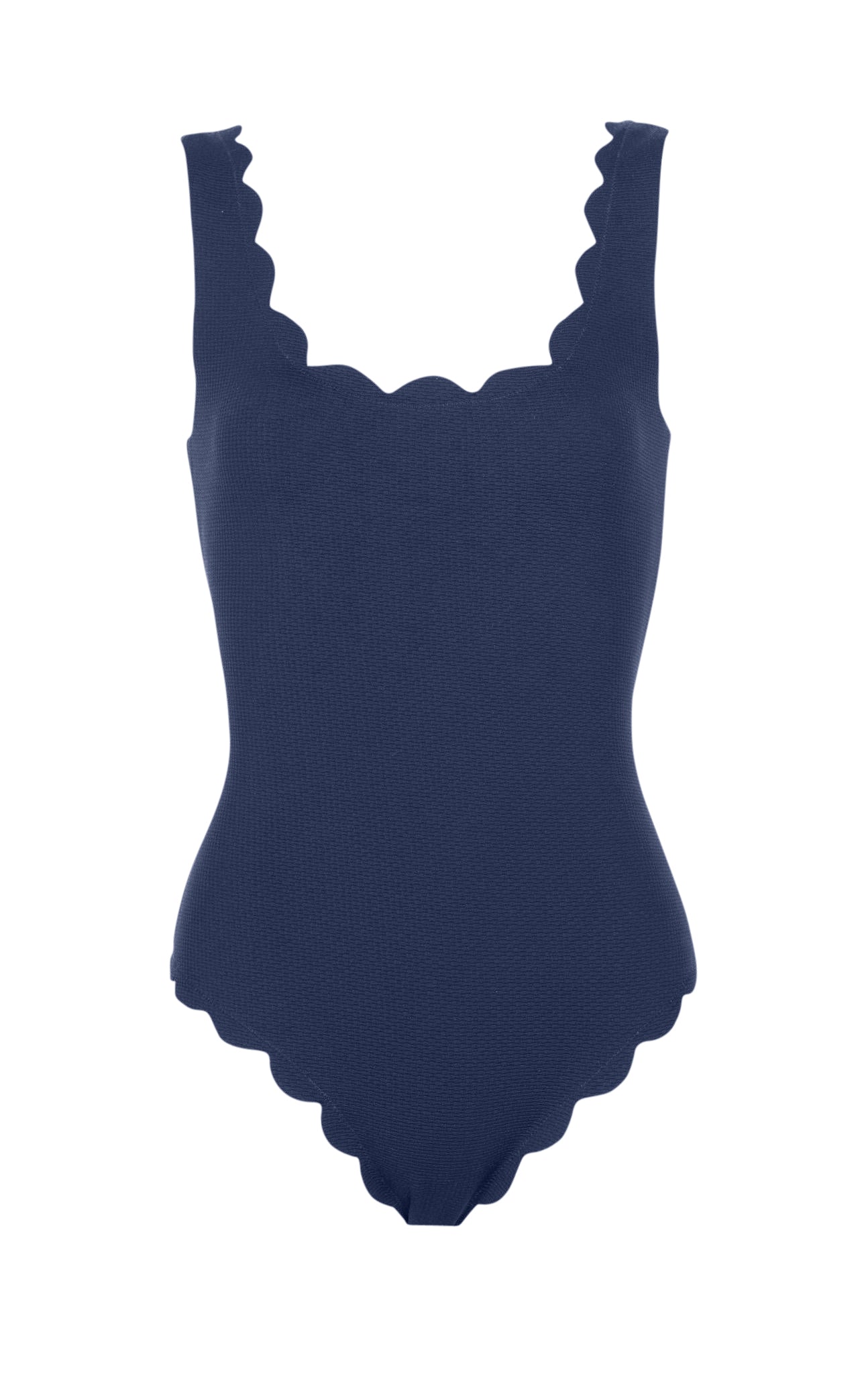 Now updated for longer torsos, the Palm Springs Maillot is one of the most sought after maillots, with its classic shape, scooped neckline and plunging back. The hand cut, raw edge signature scallops trim the neckline, legs and hips.