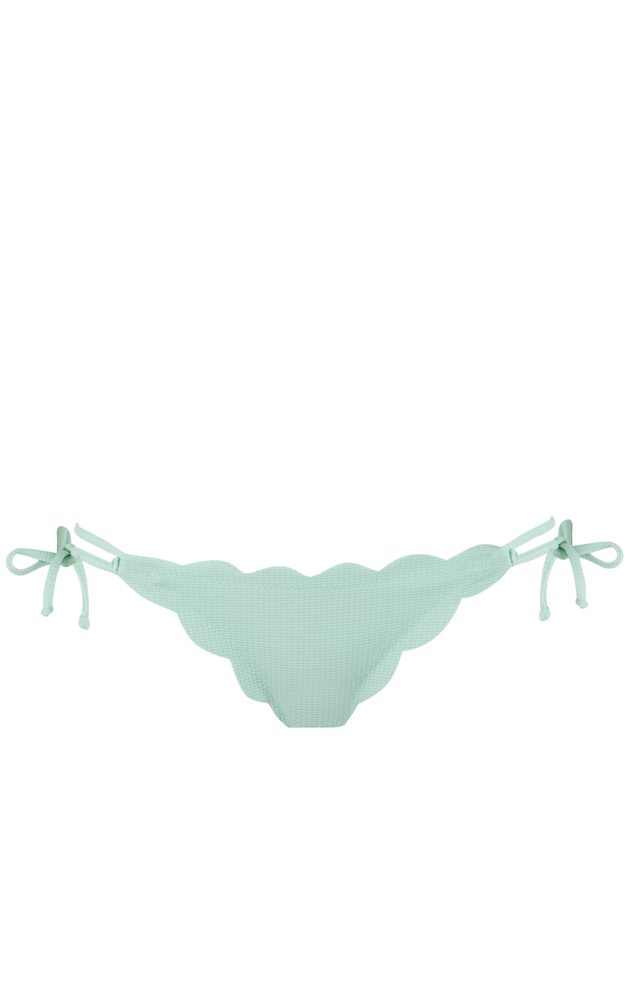 The Mott bottom is one of the Classics that provides minimal coverage. Raw edge, hand cut scallops frame this bikini bottom, finished with two string side ties. Styles well with our Mott Top or Broadway Top. Now featured in our seasonal Mint colorway.